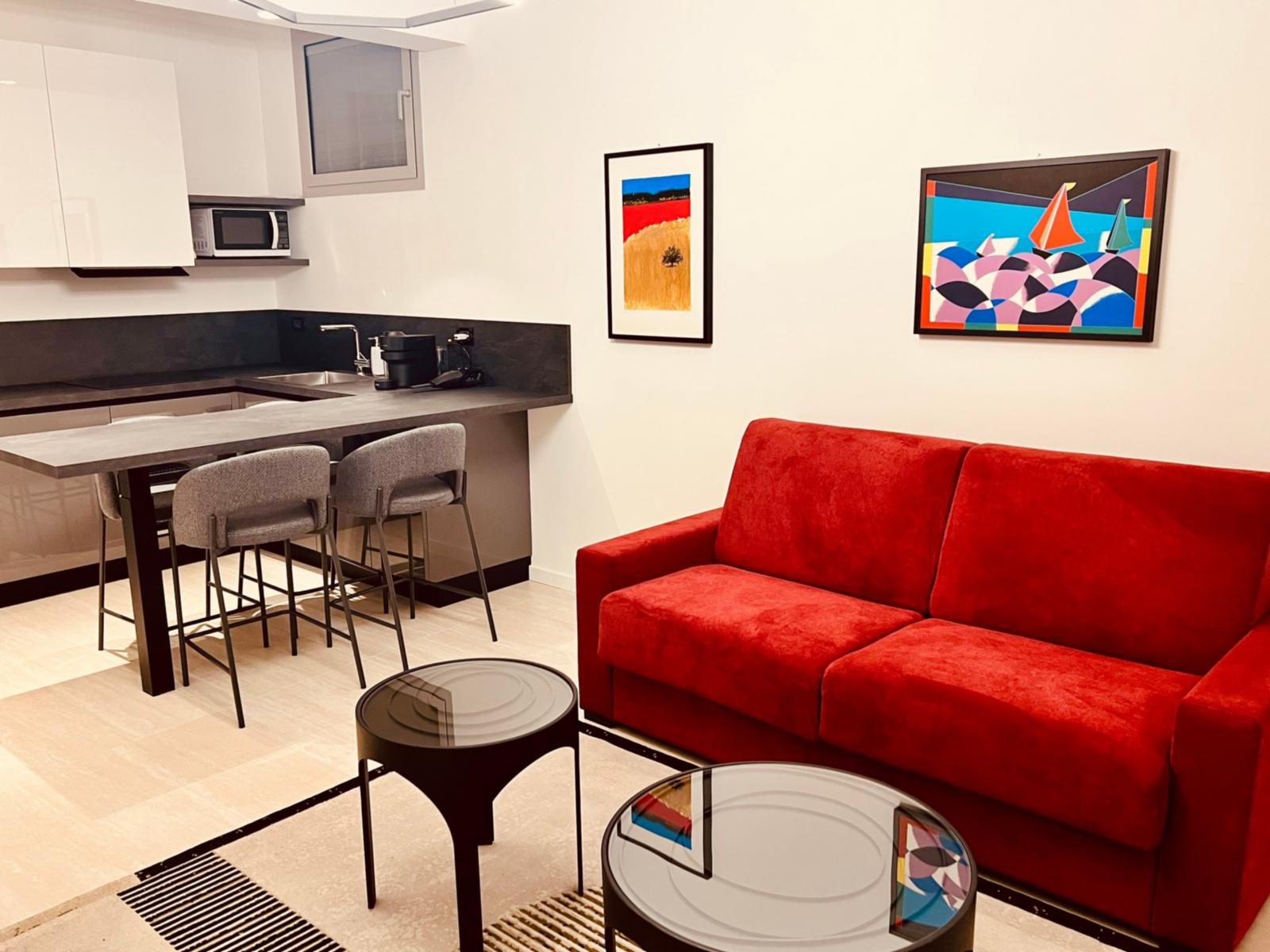 Appartamento bilocale, ampio e luminoso, dispone di una camere da letto matrimoniale o due letti singoli separati , una zona leaving con angolo cottura attrezzato, un bagno completo, terrazza con affaccio sul giardino.