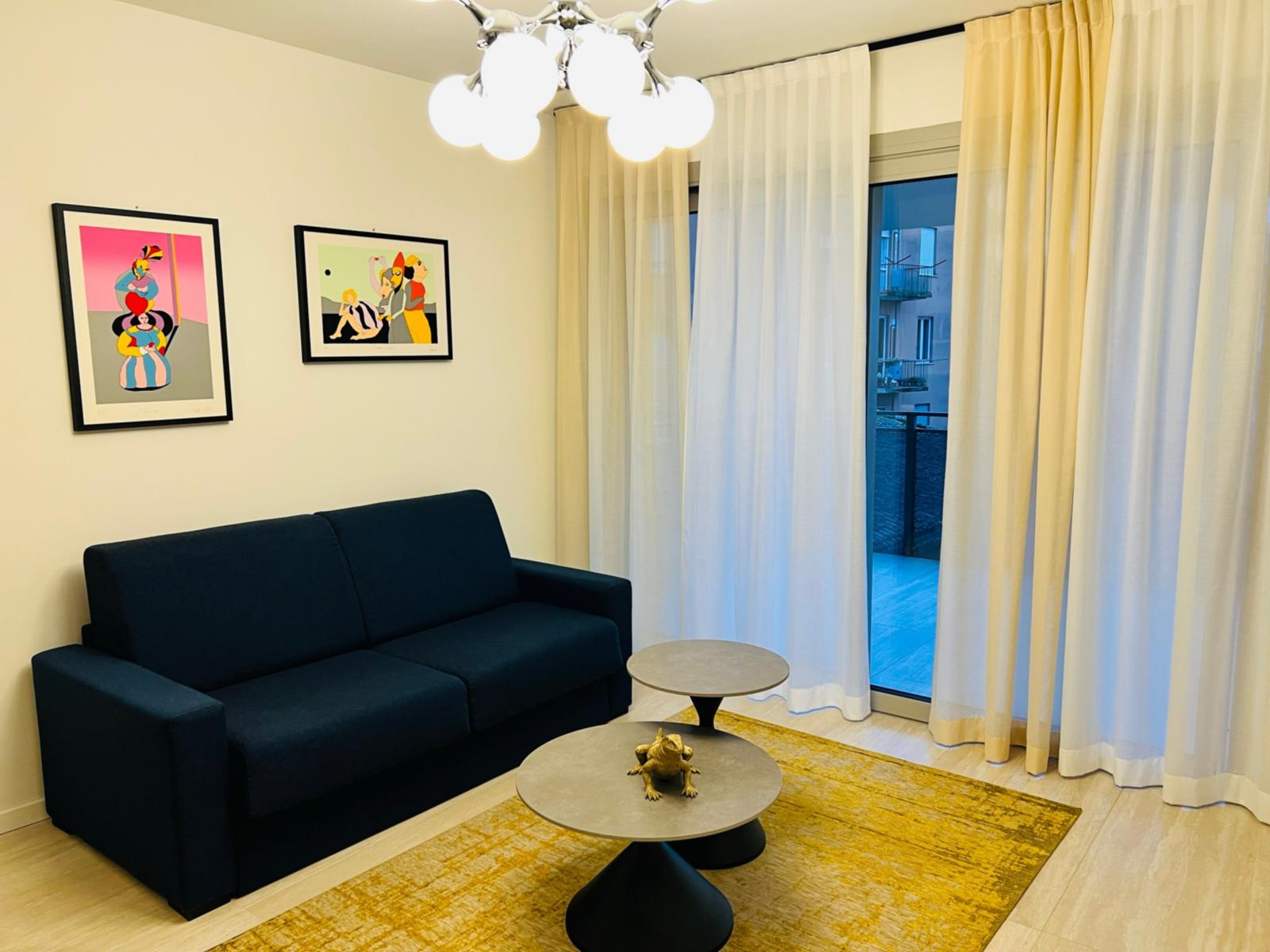 Appartamento bilocale, ampio e luminoso, dispone di una camere da letto matrimoniale o due letti singoli separati , una zona leaving con angolo cottura attrezzato, un bagno completo, terrazza con affaccio sul giardino.